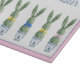 This personalized Easter glass cutting board features cute bunny rabbit green topiaries with pink, blue and yellow bows in blue and white chinoiserie flowerpots. Personalize with your choice of name or special text on the front. Perfect decor for your holiday party.
