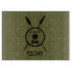 Une représentation de style "sobre" militaire noir d'un bouclier de Maccabee et de deux lances. Le bouclier est orné d'un lion et d'un texte lisant "Yisrael" (Israël) dans l'alphabet paléo-hébreu. Le texte hébreu "Maccabee" apparaît également. Les Maccabées étaient des rebelles juifs qui ont libéré la Judée du joug de l'Empire seleucide. Chanukkah n'est pas seulement un festival de mi-hiver avec des bougies et des friandises, il célèbre une victoire militaire, et sécurise la liberté religieuse, sur l'empire Seleucid. En outre, la révolte était une guerre civile impliquant les Juifs qui étaient loyaux à Dieu et ceux qui avaient adopté l'hellénisme des Seleucides.