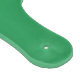 Un golfeur vert vif, portant un casquette, une chemise rouge et un pantalon bleu, mettant une balle de golf dans une planche à découper en forme de pagaie. Customisez le texte.