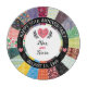 Cette planche à découper personnalisée est dotée d'un joli modèle de bordure qui ressemble à une courtepointe en patchwork et qui lit le joyeux 50e anniversaire autour de la jante. Customisez-la pour une mariée et un marié spécial en incluant leur nom et leur date mariage au centre. Les coeurs roses et une variété de motifs floraux, dots et rayés colorés confèrent à l'hôtel une ambiance champêtre chaleureuse.