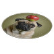 Carlin drôle avec une pomme équilibrant sur le dessus de sa tête.