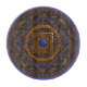 Ce mandala sur le thème de la Libra représente une pierre saphir entourée du symbole du signe, de la constellation et du symbole alchimique de l'Air parmi les fibres et les tissages.