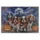 Libérez l'esprit éffrayant avec ce design d'Halloween étrange avec une meute de chiens sous un ciel sombre et clair de lune, entourée de chauves-souris volantes et de citrouilles brillants. Parfait pour ceux qui aiment une touche de plaisir effrayant avec leurs amis en fureur !