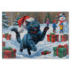 Un gracieux chat bleu russe parcourt élégamment la scène hivernale enneigée, portant un casquette de Noël rouge festif. Ce design charmant met en valeur le pelage bleu-gris de la race, les yeux verts saisissants et la douceur de la personnalité tout en captant la chaleur et la joie de la saison des fêtes. Un délicieux moment d'hiver plein de joie festive.