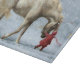Une belle image d'un cheval blanc conduit par une fille en manteau rouge pendant une tempête de neige orne cette planche à découper. Parfait pour vous-même ou comme cadeau.