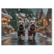 Cette conception festive capture l'esprit joyeux de la saison des fêtes, mettant en vedette des chiens adorables.Nichés dans un pays des merveilles hivernal, avec un arbre de Noël décoré et des cadeaux magnifiquement emballés. Les flocons de neige tombent doucement, ajoutant une touche magique à la scène, tandis que les couleurs vives des décorations de Noël créent une atmosphère chaleureuse et joyeuse.