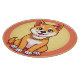 Illustration charmante d'un chiot de dessin animé mignon, assis sur un fond circulaire vibrant. Parfait pour les illustrations pour enfants, les thèmes pour animaux de compagnie et les conceptions joyeuses.