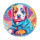 Un design artistique coloré et mignon d'un chiot portant un manteau bleu (ce design Fabriqué avec de l'IA). Commandez dès aujourd'hui et offrez-vous la joie du shopping !