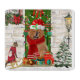 Chow Chow Dog assis à l'extérieur de la maison décorée avec la couronne de Noël, sapin de Noël est une idée cadeau de Noël parfait pour les amoureux de les chiens.