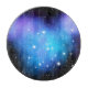 Plateau de découpe galaxie avec une éclaboussure cosmique de nébuleuses bleues et violettes, nuages et étoiles scintillantes dans un ciel noir. ♡ Idyllfire