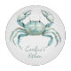 This round glass cutting board features a beautiful coastal crab in soft watercolor shades of blue and green on a solid white background. Personalize with your choice of name or special text. Makes a great hostess gift.