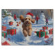 Planche À Découper Cockapo coule en neige avec Casquette de Noël