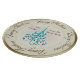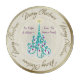 Belle planche de charcuterie avec une peinture numérique originale de Leslie Sigal Javorek d'un arbre de Noël turquoise tourbillonnant avec des ornements violets sur une Trompe L'oeil (astuce de l'oeil) illusion arrière - plan de porcelaine fine en os et plus de profondeur. 2 champs de texte personnalisés pour personnaliser la plaque pour un grand cadeau.