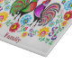 Cette planche à découper orientée americana mignonne comporte une conception merveilleuse de deux coqs fiers tenant le sein au sein. Un coq est coloré pourpre rouge, vert, de rose, et noir, et l'autre est rose, rouge et noir. Les images de coq sont encadrées avec des images brillamment colorées de fleur en rouge, l'or, le jaune, le bleu, et le vert. Au dessus et au bas de l'image est votre texte fait sur commande ; personnalisez-le ! Très coloré, lumineux, et amusement !