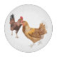 Cette belle planche à découper décorée ferait un beau cadeau. Il présente un coq coloré courant vers une poule brune brune qui se dresse contre un arrière - plan blanc clair. La couleur peut être changée.