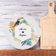 Planche à découper élégante avec un cadre tropical avec des feuilles et un oiseau toucan abstrait. Ceci peut être personnalisé avec les noms d'un couple. Les noms sont dans une police de caractères noire. Le fond est blanc. La couleur du cœur est modifiable en allant dans l'outil de conception, en sélectionnant le calque du cœur à gauche, puis en cliquant sur la boîte de couleur à droite pour afficher un nuancier.