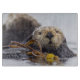 Planche à découper de chalut de mer de la Californie. La belle loutre de mer du sud recherche dans la surprise de la planche à découper de varech un peu du sauvage de la roche de Morro dans la baie la Californie de Morro.