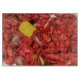 Chacun profite d'un agréable moment à une ébullition d'écrevisses et personne ne laisse affamé. La planche à découper comporte la photographie de tous les fixins d'une ébullition d'écrevisses : écrevisses, saucisse, maïs et pommes de terre rouges.