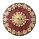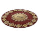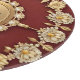Un agencement captivant de motifs floraux dorés complexes formant une forme circulaire, magnifiquement mis en valeur sur un fond rouge foncé, parfait pour les thèmes de luxe, de design et d'élégance.