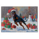Un Doberman élégant court puissamment à travers la scène hivernale enneigée, portant un casquette de Noël rouge festif. Ce design saisissant met en valeur la construction sportive, la nature loyale et la personnalité spirituelle de la race tout en capturant la chaleur et la magie de la saison des fêtes. Un hiver audacieux, plein de charme festif.