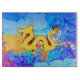 Coupez, coupez et découpez finement votre nourriture et vos légumes en toute sécurité avec cette planche de coupe en verre chinois Jaune Dragon coloré et décoratif. Il présente une image mystique colorée d'arrière - plan multicolore. Pour voir d'autres produits avec des dessins animaliers, cliquez sur le lien du magasin Animal_World.