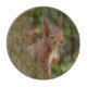Un écureuil roux à l'air malicieux qui sort de derrière un arbre.