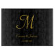 Planche À Découper Élégant Monogramme Noir et Or Nom initial Date