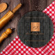 Elégante table de taille en cuir noir de luxe avec une parties scintillant en or monogrammed carré et signature de nom personnalisée.