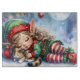Planche À Découper Elfe de Noël couché avec Calico Kitten