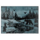 "forest wildlife bears birds", "water woodland nature scene", "rustic forest design animals", "outdoor wilderness art decor", "enchanted forest kitchen board", "wildlife inspired home accent"