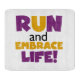 Si vous aimez courir, courir 5Ks, 10Ks, demi-marathons ou marathons, vous adorerez ce texte coloré en violet et jaune qui lit Run and Embrace Life! Courez et Embrace Vie T-shirts, sweat - shirts à capuche, magnets, boutons, cartes, autocollants, porte - clés, et beaucoup d'autres articles pour les coureurs qui aiment un design de course brillant et coloré!