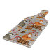 La planche à découper thématique des bois d'automne présente renard et blaireau avec des feuilles et des glands sur arrière - plan gris clair.