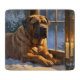 Une scène de vacances pleine de charme avec un chien assis paisiblement à côté d'une fenêtre, entouré de lumières de Noël éclatantes. Ce design cosy et festif reflète l'esprit de la saison, parfait pour ajouter chaleur et charme à tout espace. Idéal pour les amoureux de les chiens et les amateurs de décoration de vacances.