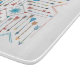 Ce motif de planche à découper d'inspiration aztèque a une ambiance boho chic avec un agencement géométrique de flèches autour d'une forme de soleil éclatante. Cette version présente un dégradé de couleurs allant du bleu turquoise au blanc et rose vif sur la couleur arrière - plan de votre choix (le blanc ici est facultatif). Recherchez ID748 pour voir d'autres options de couleur et produits avec ce motif.