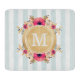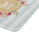 Panneau de découpe en verre avec motif rayé à la menthe, fleurs roses à l'aquarelle et fausse feuille d'or monogramme personnalisé.