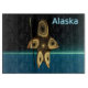Image fractale brune suggérant un chasseur inuit très stylisé, portant des vêtements traditionnels en fourrure, tenant un harpon avec une tête d'ivoire. L'image est superposée à un arrière - plan représentant l'hiver polaire sombre. Le texte "Alaska" apparaît en bleu et blanc brillant.