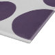 Belle et branchée Big Pois Cutting Board. Ce design présente des pois grand cercle surdimensionnés en violet et blanc. Un texte peut être ajouté à cette conception pour lui donner une touche personnelle.