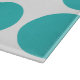 Belle et branchée Big Pois Cutting Board. Ce design présente des pois de grand cercle surdimensionnés en bleu turquoise et blanc. Un texte peut être ajouté à cette conception pour lui donner une touche personnelle.