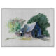 Peinture d'une grange rurale parmi les arbres. Impression de l'aquarelle originale réalisée par John A. Muir.
