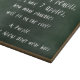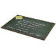 Une planche à découper d'amusement pour des professeurs de maths avec un sens de l'humour, et pour ceux qui sont mathématiquement défiés - panneau de craie avec une note collante là-dessus, et : "Comment je vois des problèmes de mot de maths : Si vous avez 4 crayons, et je prends 7 pommes, combien de crêpes s'adapteront sur le toit ? A : Pourpre. Puisque les aliens n'utilisent pas des casquettes."