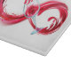 Infinity symbole of continuous stream of red pouring into glass glass glass on white background.