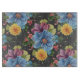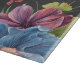 Belle planche de découpe rectangulaire a de grandes fleurs bleues primaires peintes avec des fleurs plus petites en marigold jaune, violet et rose, le tout sur un arrière - plan gris fusain lui donnant un look sombre et élégant. Objets correspondants disponibles pour le lit, le bain et dans toute la maison
