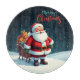 Une scène hivernale fantaisiste avec le Père Noël, chargé de cadeaux, sur son traîneau au milieu d'un paysage enneigé. Le texte "Joyeux Noël" est élégamment affiché dans des couleurs festives, ajoutant à l'atmosphère joyeuse de la période des fêtes.