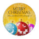 Ajoutez Noël à la cuisine avec cette planche à découper en verre commémoratif, qui présente l'accueil "Joyeux Noël" sur un arrière - plan jaune chaleureux avec des flocons de neige blancs et un trio d'ornements de vacances colorés. Customisez avec le nom de famille et/ou le texte de votre choix. Design © W.H. Sim. Voir plus sur zazzle.com/expressionsoccasions