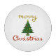 'Joyeux Noël' en fausse couleur or et écriture rouge avec illustration d'un arbre de Noël orné de billes et d'étoiles centre d'illustration.