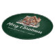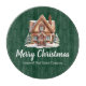 Ce joli courtier vert personnalisé Joyeux plateau de Noël a votre nom d'entreprise immobilière personnalisée et message de vacances en typographie verte chic ainsi qu'une belle image d'une maison en hiver entourée de pins. Un cadeau de vacances professionnel pour une entreprise immobilière.
