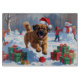 Un puissant Mastiff tibétain court à travers la scène hivernale enneigée, portant un casquette de Noël rouge festif. Ce design audacieux met en valeur la construction massive de la race, son manteau épais et sa nature protectrice tout en capturant la chaleur et la joie de la saison des fêtes. Un moment d'hiver saisissant, plein de charme festif.
