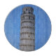 This captivating photograph showcases the iconic Leaning Tower of Pisa standing elegantly against a deep blue twilight sky in Pisa. The historic marble tower, famous for its unmistakable tilt, is beautifully illuminated, highlighting its intricate Romanesque arches and layered columns.