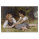 Le soleil d'automne chaud s'est répandu à travers les feuilles du noisetier, jetant des ombres dansantes sur le sol de la forêt. Deux jeunes filles, Elise et Juliette, s'assirent sous ses branches, une petite pile de noix d'or nichée parmi les feuilles déchus. - Elise, l'aînée des deux, se pencha contre l'écorce rugueuse de l'arbre, un regard malicieux dans ses yeux. Elle tenait une poignée de noix au-dessus de la tête de Juliette. "Essaie de les attraper, petite souris !" chantait-elle, parsemant les noix d'un plaisir de rire. - Juliette, un tourbillon de mouvement, pourchassée après les noix tombantes, son rire résonnant dans les bois. Elle s'est emparée d'une poignée, son visage a rouillé d'effort et de plaisir. "Tu es impossible, Elise !" s'écria-t-elle, sa voix sans souffle. - Elise grinça, ses yeux criaient aux coins. "C'est l'idée, ma petite !" rétorqua-t-elle en jetant quelques autres noix dans l'air. - Ils ont chuté et roulé parmi les feuilles, leurs rires se mêlant au doux bruissement des arbres. Pendant un moment, le monde a semblé se rétrécir à seulement les deux, perdus dans leur propre jeu privé. - Juliette, prenant son souffle, regarda autour de lui la lumière du soleil qui filtrait à travers les feuilles. "C'est si beau ici", soupira-t-elle avec contentement. "J'aimerais que nous puissions rester ici pour toujours." - Elise hocha la tête, en regardant la canopée des feuilles. "Moi aussi", a-t-elle admis. "C'est comme un jardin secret." - Ils sont restés silencieux, se sont contentés de se côtoyer et de la tranquillité paisible des bois. Elise, toujours rêveuse, commença à imaginer ce qu'ils feraient de leurs trésors. "Peut-être pourrions-nous les rôtir au-dessus du feu, songeait-elle, et raconter des histoires toute la soirée." - Les yeux de Juliette se sont élargis. "Ou peut-être pourrions-nous faire un collier pour Grand-mère", suggéra-t-elle, sa voix remplie d'excitation. "Elle adore les colliers de noisettes." - Alors que le soleil commençait à tremper sous l'horizon, projetant de longues ombres à travers le sol de la forêt, les filles ont ramassé leurs noix à contrecoeur et ont commencé à rentrer chez elles. Ils marchaient main dans la main, leur rire s'estompait au loin, laissant derrière eux un sentier de feuilles dorés et l'odeur persistante de l'automne. - Les bois, jadis vivants avec leur bavardage ludique, retournèrent à son sommeil paisible, le seul son du doux murmure du vent à travers les arbres. Mais le souvenir de leur rire, comme l'odeur de la fumée de bois, s'est allongé longtemps après leur départ, un rappel des joies simples de l'enfance et de la magie durable d'un secret partagé. - Les Noisettes ou The Nut Gatherers est une peinture à l'huile de 1882 réalisée par l'artiste français William-Adolphe Bouguereau. Cette oeuvre est du domaine public dans son pays d'origine et dans d'autres pays et zones où la durée du droit d'auteur est la vie de l'auteur plus 100 ans ou moins.