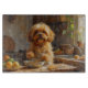 Ajoutez une touche gracieuse et charmante à votre cuisine avec ce design Lhasa Apso mettant en vedette un chiot au pelage soyeux cuisinant dans un cadre cosy. Avec sa fourrure fluide et son expression calme, cette œuvre d'art capture l'élégante et affectueuse personnalité de la race.